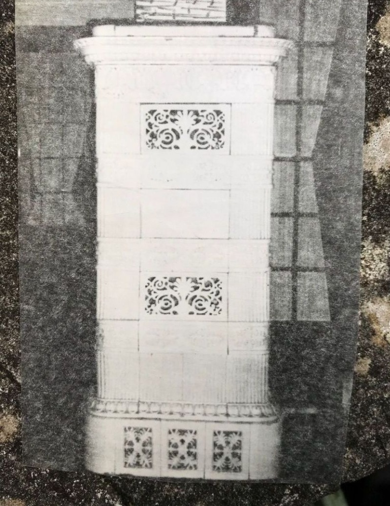 Projectbeschrijving: Een wit geglazuurde tegelkachel Herrnhütter model. Vervaardigd door de Tegelkachel en terracotta fabriek Fa. E.C. Martin, Zeist (lid van de Broedergemeente), Hollands, 19e eeuw